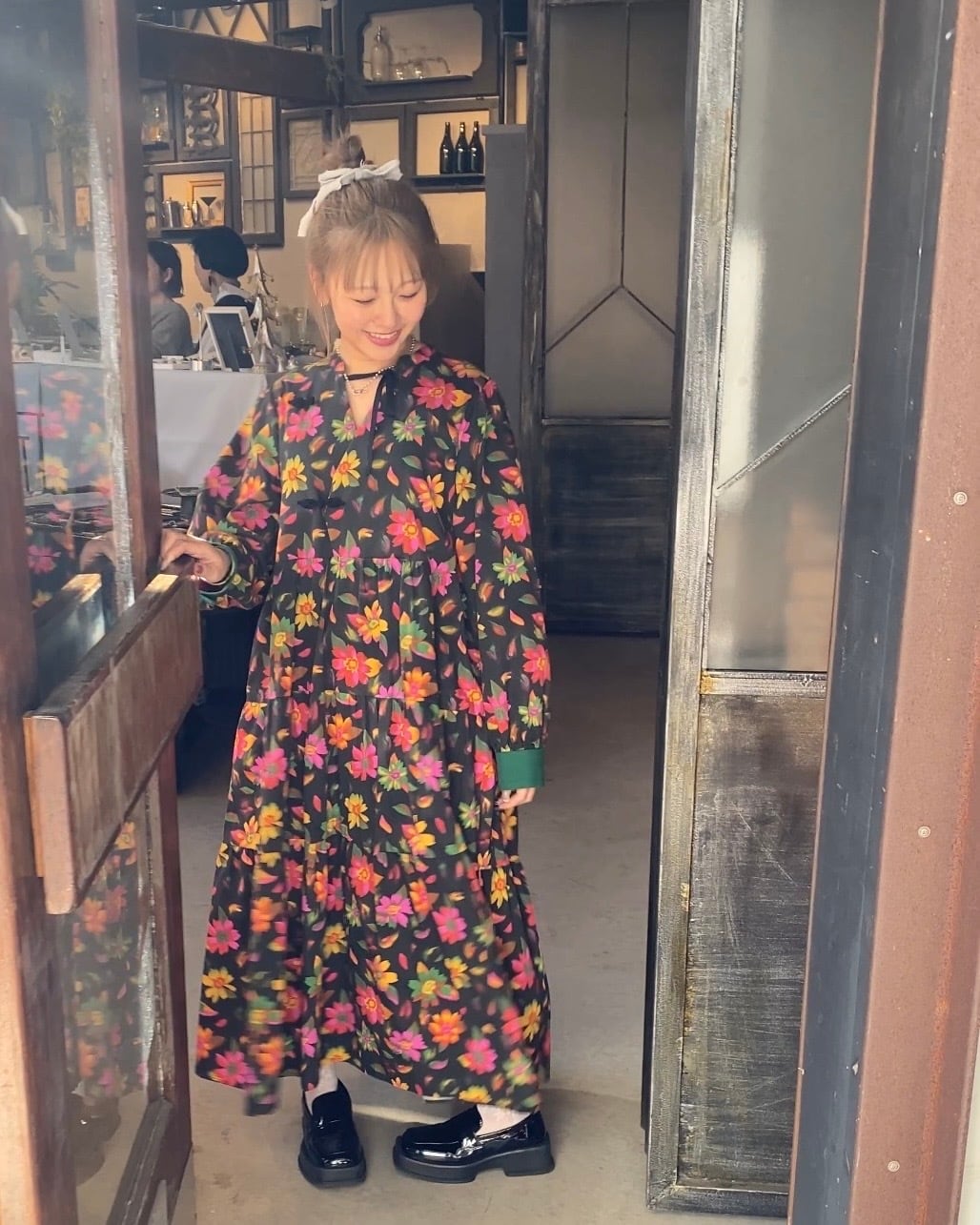 チャイナボタンをすべて留めてクラシカルに、
